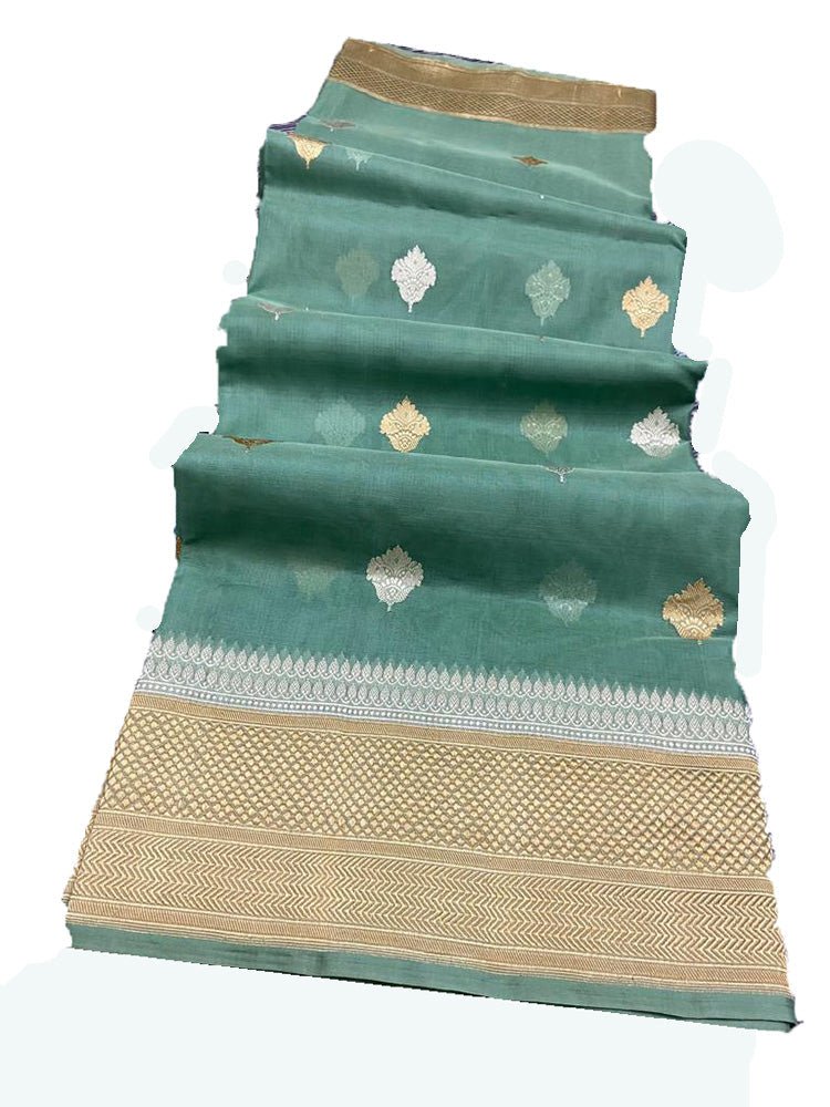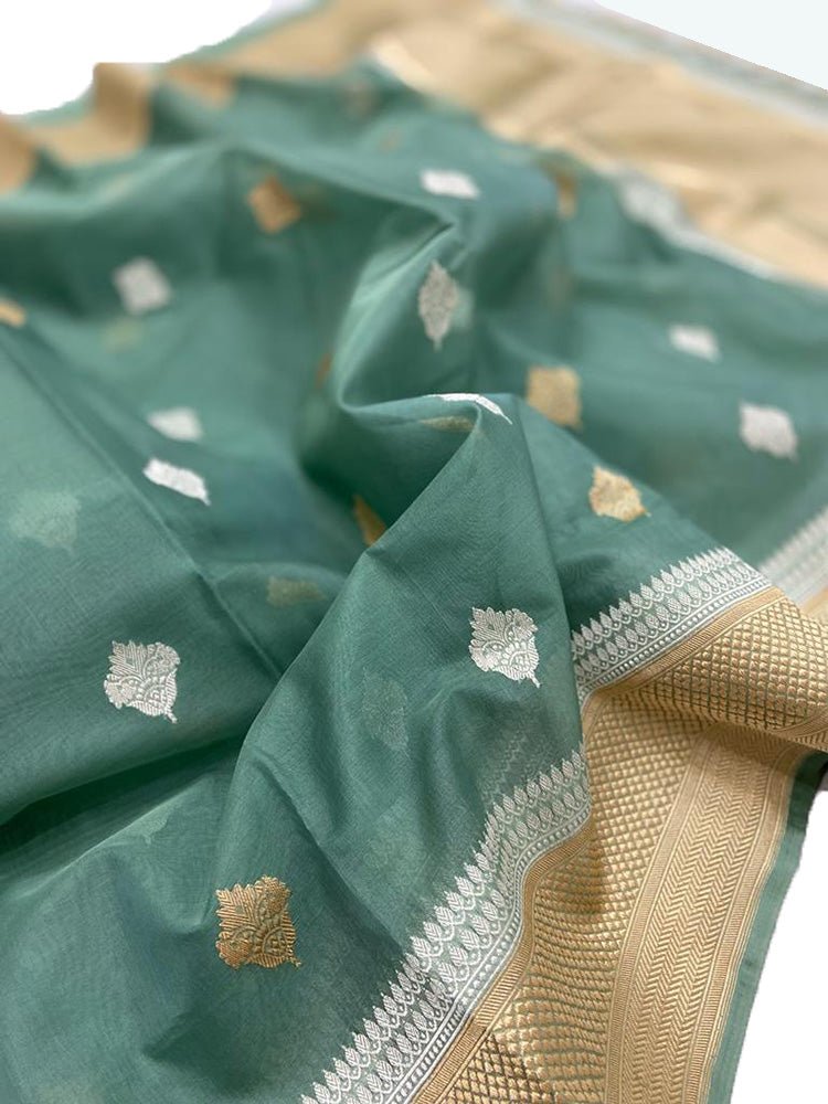 FABRIC: Kora silk, also known as organza silk was primarily made out of twisting only silk yarns and filaments.The sheer, almost see-through nature of the fabric helps maintain a weightlessness to it, which coupled with the sheen it derives from the silk yarns, adds the required tone of glamour to one’s outfit.