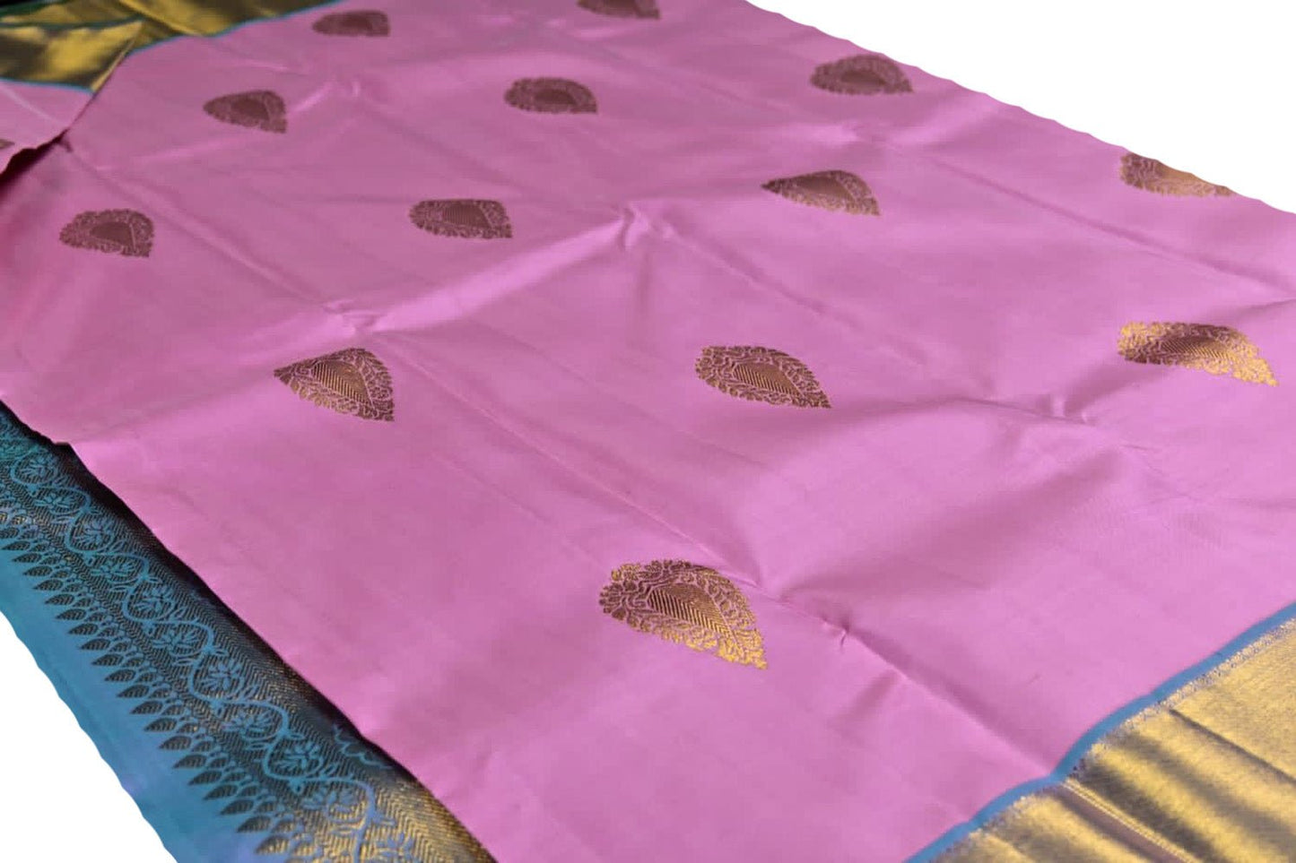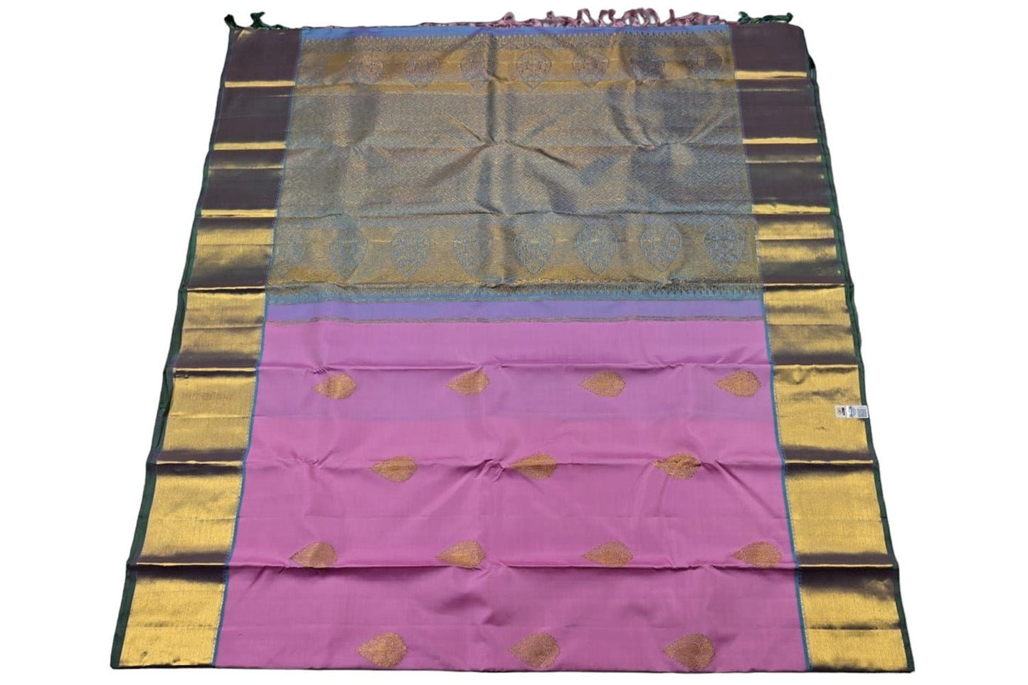 "• Widely known as the queen of silks. Rich and lustrous fabric with deep colors mixed with gold & silver zari.