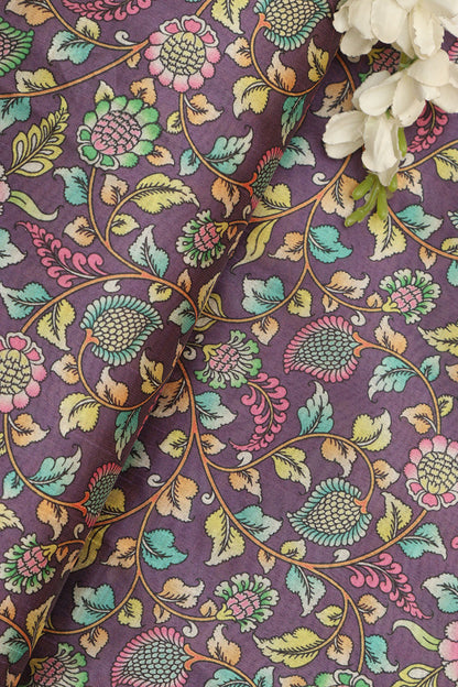 The Vibrant Purple Kalamkari Design Tussar Silk Fabric is a stunning piece that exudes elegance and sophistication. The rich purple hue is complemented by intricate Kalamkari designs, adding a touch of traditional charm to any outfit. Made from luxurious Tussar silk, this fabric is soft to the touch and drapes beautifully, making it perfect for creating stunning ethnic wear or contemporary ensembles. The 1 meter length allows for versatility in designing various garments such as sarees, blouses, or even accessories. Stand out from the crowd with this unique and eye-catching fabric that is sure to make a statement wherever you go.