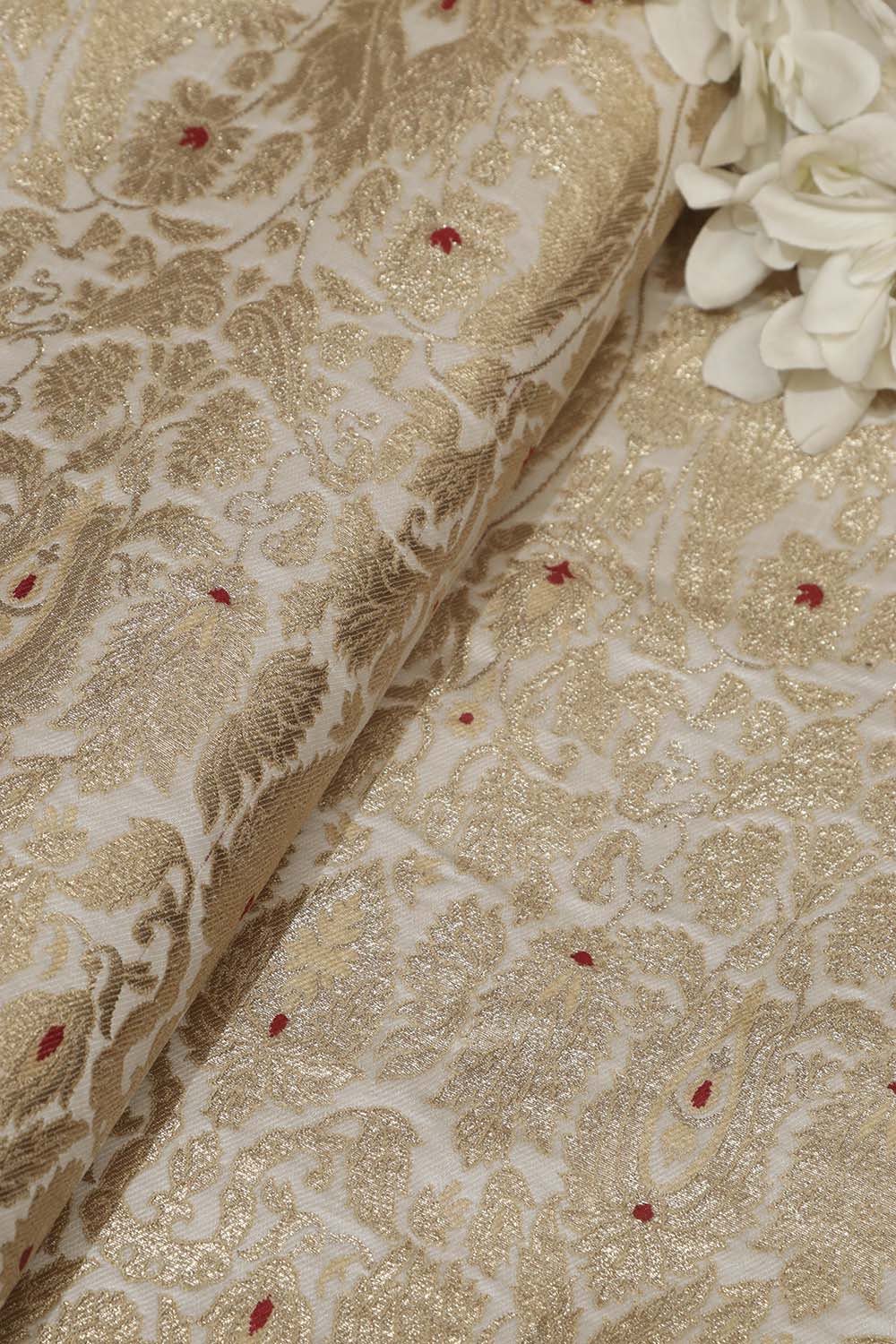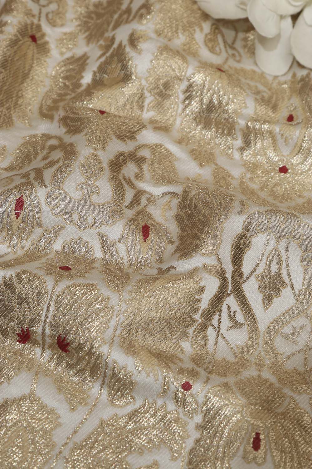 White Banarasi Handloom Kimkhwab Silk Fabric is a luxurious and elegant choice for any special occasion. This exquisite fabric is handwoven in Banaras, India, using traditional techniques that have been passed down through generations. The pure silk material has a beautiful sheen and a soft, smooth texture that drapes beautifully. The white color is timeless and versatile, making it perfect for a variety of outfits. Whether you're looking to create a stunning saree, lehenga, or kurta, this fabric is sure to make a statement. Special features: 1. Handwoven in Banaras, India 2. Made from silk 3. Beautiful sheen and soft texture 4. Timeless white color 5. Versatile for a variety of outfits 6. Perfect for special occasions 7. Traditional Kimkhwab design
