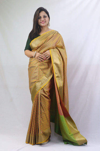 Get ready to add a touch of elegance to your wardrobe with the latest Yellow Banarasi Soft Silk Saree with Contrast Border. This saree is a perfect blend of traditional and modern designs, making it a must-have for every fashion-conscious woman. Shop now and get your hands on this beautiful saree!